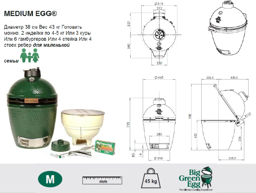 Big Green Egg Medium — достойный образец керамической печи, работающей на открытом воздухе. Это надежное оборудование идеально подойдет для домашнего применения. С его помощью легко приготовить вкусные и полезные блюда для семейного барбекю: ароматные стейки, мясо на ребрышках, гамбургеры, сосиски, индейку или курицу на несколько человек. В нем сочетаются сразу несколько функциональных кухонных устройств: