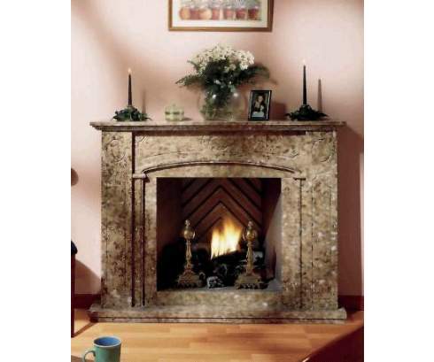 Этот классический портал выполнен из узорчатого мрамора зеленовато-коричневого цвета. Простое дизайнерское решение делает этот камин универсальным и, в то же время, притягательным.