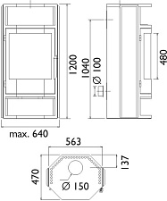 - Диаметр дымохода, (мм) 150