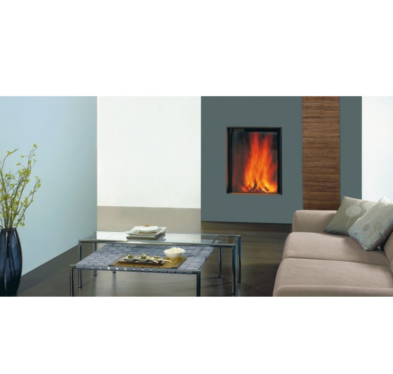 Фасад каминной топки представляет совершенно ровную и гладкую поверхность. Отсутствие дверной ручки, рамки по нижнему краю стекла делают его абсолютно минималистичным. Рациональность, четкая геометрия, внушительный размер фасада придают модели современное звучание.
